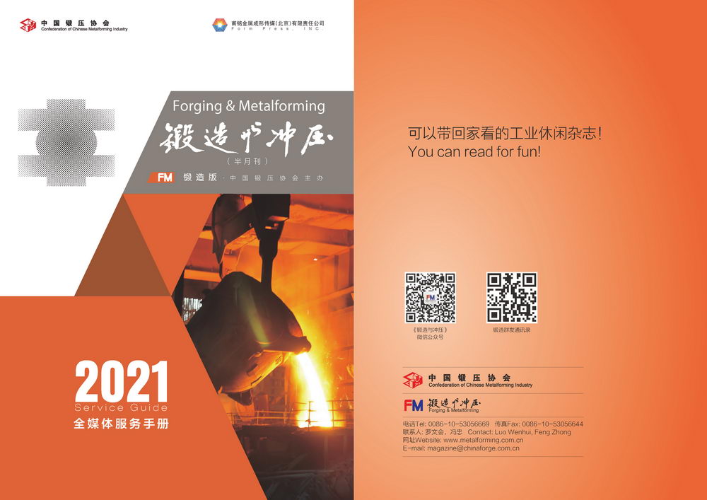 FM《鍛造與沖壓》由中國鍛壓協(xié)會(huì)主辦,是一本以市場需求為導(dǎo)向,集信息、技術(shù)、產(chǎn)品、市場與管理為一體的綜合性高端雜志。月發(fā)行量2.5萬冊(cè),采取B2B發(fā)行模式,具有鍛壓行業(yè)針對(duì)性最強(qiáng)、覆蓋有效率最高的讀者群體,是中國鍛壓行業(yè)的領(lǐng)銜雜志媒體,受到國內(nèi)外廣泛的認(rèn)可。
