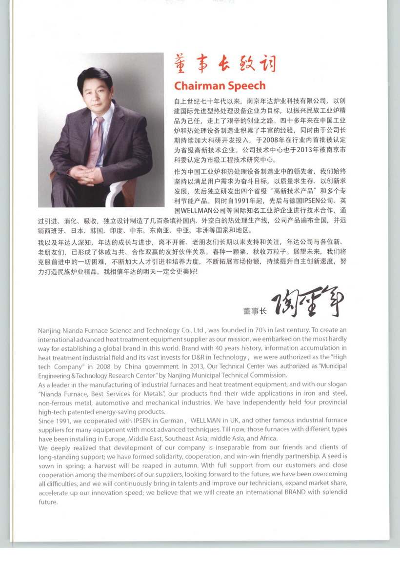 自上世紀七十年代以來,南京年達爐業(yè)科技有限公司,以創(chuàng)建國際先進型熱處理設備企業(yè)為目標,以振興民族工業(yè)爐精品為己任,走上了艱辛的創(chuàng)業(yè)之路。四十多年來在中國工業(yè)爐和熱處理設備制造業(yè)積累了豐富的經(jīng)驗,同時由于公司長期持續(xù)加大科研開發(fā)投入,于2008年在行業(yè)內(nèi)首批被認定為省級高新技術(shù)企業(yè)。公司技術(shù)中心也于2013年被南京市科委認定為市級工程技術(shù)研究中心。作為中國工業(yè)爐和熱處理設備制造業(yè)中的領(lǐng)先者,我們始終堅持以滿足用戶需求為奮斗目標,以質(zhì)量求生存、以創(chuàng)新求發(fā)展,先后獨立研發(fā)出四個省級“高新技術(shù)產(chǎn)品”和多個專利節(jié)能產(chǎn)品。同時自1991年起,先后與德國IPSEN公司、英國WELLMAN公司等國際知名工業(yè)爐企業(yè)進行技術(shù)合作,通過引進、消化、吸收,獨立設計制造了幾百條填補國內(nèi)、外空白的熱處理生產(chǎn)線,公司產(chǎn)品遍布全國,并遠銷西班牙、日本、韓國、印度、中東、東南亞、中亞、非洲等國家和地區(qū)。