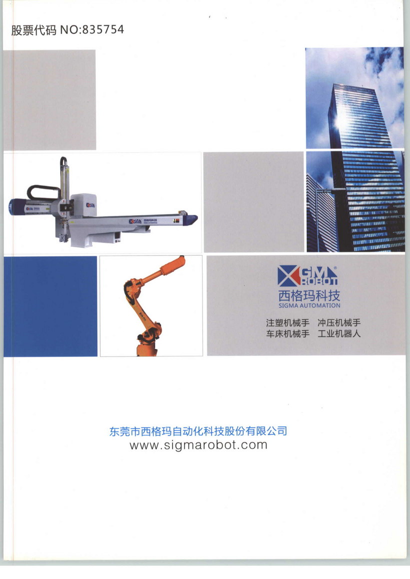 東莞市西格瑪自動化科技股份有限公司為致力于射出成型注塑機之專用機械手臂的研發(fā)、生產(chǎn)、銷售及服務(wù)的高新技術(shù)產(chǎn)業(yè)。 產(chǎn)品內(nèi)容包括:全伺服式機械手、橫走式機械手、縱走式機械手、斜臂式機械手、立式注塑機專用機械手等十大系列機械手,可搭配15噸到4000噸的各型射出成型注塑機,為您量身打造最佳自動化解決方案;產(chǎn)品廣泛應(yīng)用于:家電業(yè)、計算機及周邊產(chǎn)業(yè)、光電業(yè)、化妝品包裝、汽車及其零部件、事物機器零件業(yè)、精密齒輪業(yè)、PET瓶胚業(yè)、家庭日用品業(yè)、手機通訊業(yè)、醫(yī)療用品業(yè)、食品包裝業(yè)……等等。