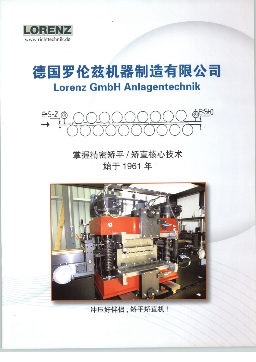 德國羅倫茲機器制造有限公司由H. Lorenz先生創(chuàng)立,專業(yè)生產(chǎn)19/21輥精密矯平設(shè)備, 9輥矯直裝置, 開卷機和收卷機, 電動輥喂料器和橫向零件進給裝置. 所有設(shè)備所需電氣,氣動和液壓控制裝置也有我們自己的特點. 是矯平矯直技術(shù)的創(chuàng)始人.公司擁有50多年矯平設(shè)備生產(chǎn)和研發(fā)經(jīng)驗. 從1961年開始,H.Lorenz先生就研發(fā)板材矯平技術(shù), 并將此技術(shù)先后介紹給兩家德國公司, 使這兩家公司開始了矯平設(shè)備的生產(chǎn)。